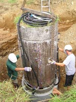 in different depths into the soil of the cylinder; cables